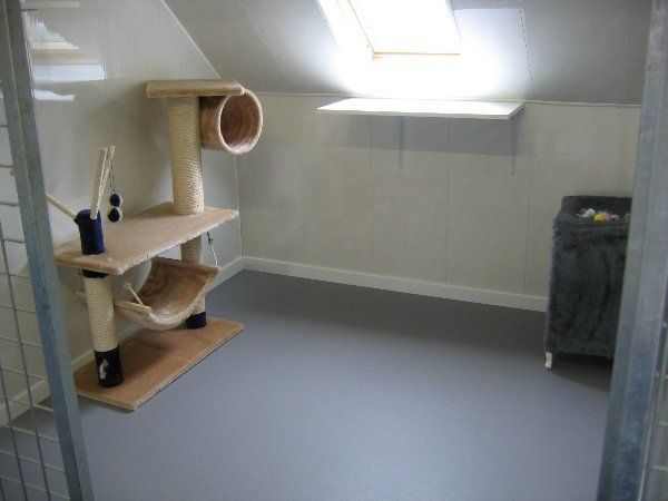Ons kattenpension is onderverdeeld in 4 ruimtes: