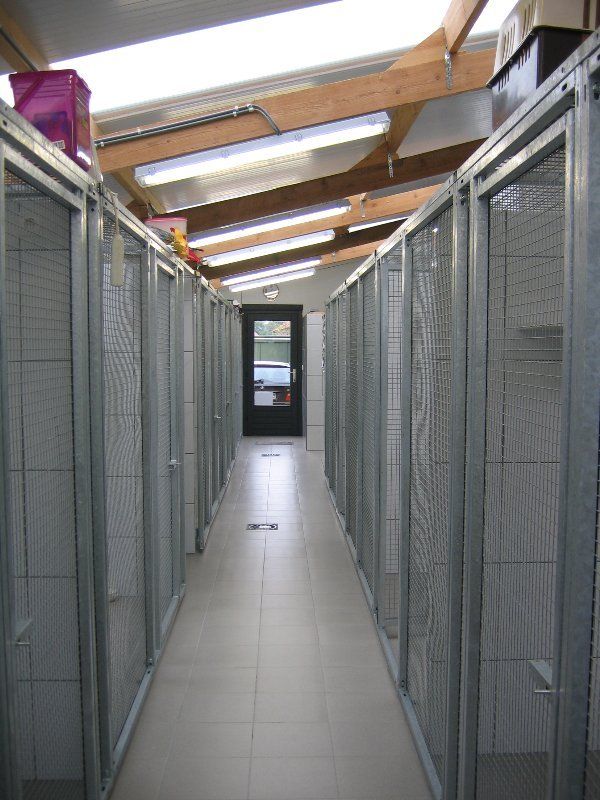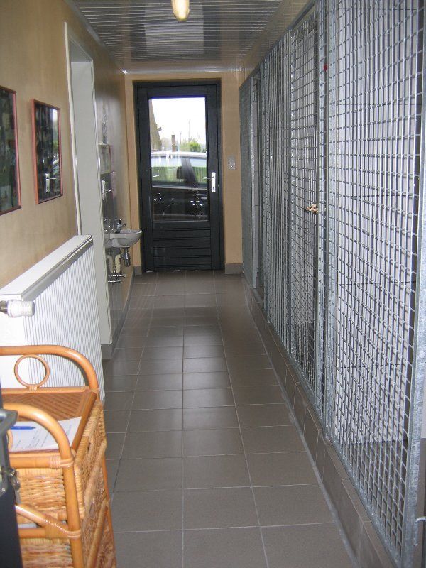 2) het "klein" pension: in 2007 hebben we een eerste keer het pension uitgebreid, met een kleinere ruimte met 4 ruime binnenrennen. In dit deel is er centrale verwarming.